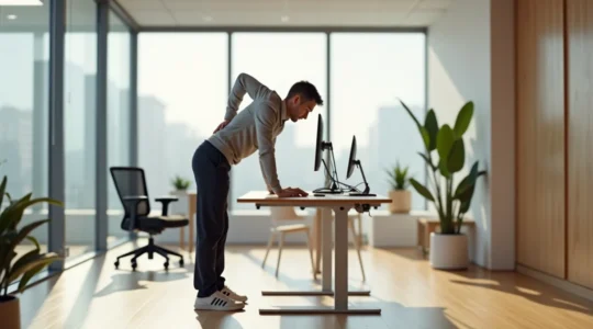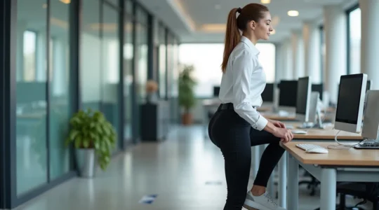 Diese Verteilung verhindert, dass Ihr Körper über Stunden in Schutzspannung verfällt, und wirkt präventiv gegen die typischen Bürobeschwerden: Nackensteifigkeit, untere Rückenschmerzen und Knieprobleme durch verkürzte Hüftbeuger.