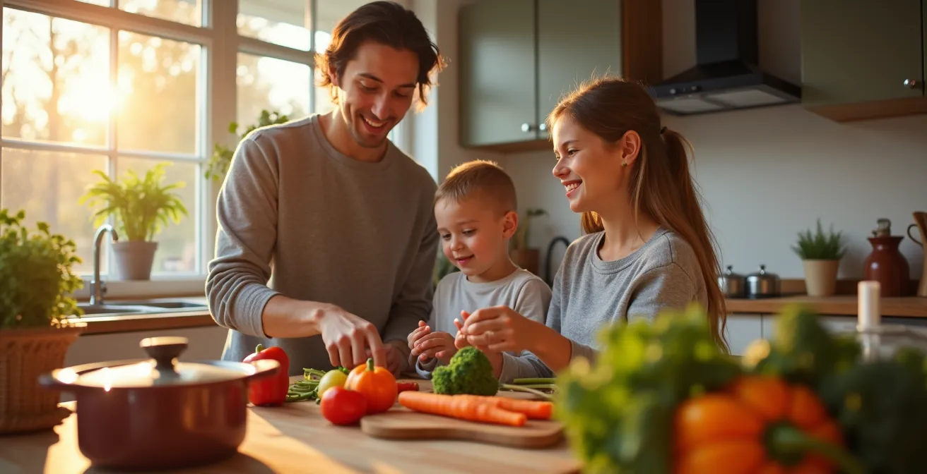 Zwischen dem morgendlichen Aufbruch zur Arbeit, den Hausaufgaben der Kinder und dem abendlichen Zubettgeh-Ritual bleibt oft nur eine Frage: „Was essen wir heute?“ Das schlechte Gewissen nagt, wenn es wieder die schnelle Pasta mit Fertigsoße oder die Tiefkühlpizza wird. Sie kennen das Gefühl, den Anspruch an eine gesunde, ausgewogene Ernährung für Ihre Familie im hektischen Alltag einfach nicht erfüllen zu können. Die üblichen Ratschläge wie stundenlanges Meal-Prep am Wochenende oder das aufwändige Verstecken von Gemüse in komplizierten Gerichten klingen in der Theorie gut, fühlen sich in der Praxis aber oft wie eine zusätzliche Belastung an.